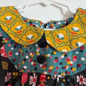 Charming dress with vibrant floral patterns. Features a playful mix of colors. Perfect for casual outings.