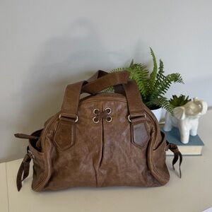 Cole Haan Done Satchel Brown Grommet II Unit Leather Bag Y2K