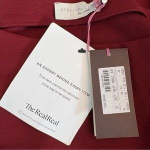 Timeless and sophisticated Stella McCartney fitted sheath dress in a rich burgundy shade. This elegant dress features a structured silhouette with clean tailoring that flatters the figure while maintaining a refined, modern aesthetic. Perfect for professional settings, formal events, or evening occasions.