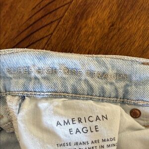 AE Stretch Super High-Waisted Straight Jean Light blue color. Classic design. Perfect for casual wear.