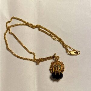 Elegant gold necklace featuring a striking black pendant. Perfect for adding a touch of sophistication to any outfit.