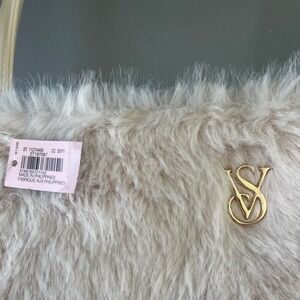 Victoria's Secret Faux Fur Tote Bag Cream Beige Gold VS Logo NWT 27197087