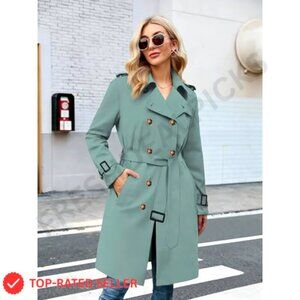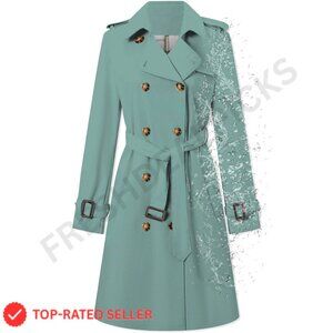 Women's Double Breasted Waterproof Trench Coat Classic Lapel Overcoat with Belt