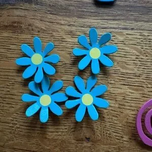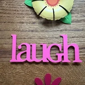 Set of colorful wall art pieces including flowers, surfboard, and words- FRIENDS and LAUGH