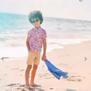 Vibrant button-down shirt with playful sea life patterns. Short sleeves and classic collar. Ideal for casual outings.