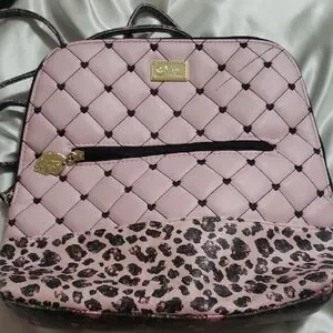 Betsey Johnson Pink Quilted Backpack with Leopard Print