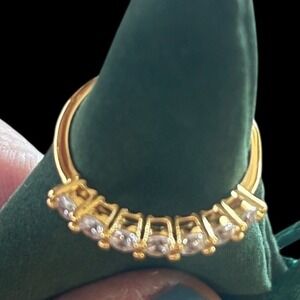 925 Sterling Gold Tone Moissanite Half Eternity Band Stacking Ring Sz 8.25