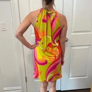 Trina Turk Vibrant Pink and Orange Halter Dress