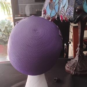 This elegant purple hat features beautiful floral accents, perfect for adding a touch of sophistication to any outfit.