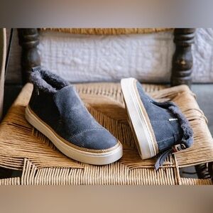 TOMS Women's Paxton Mid Cut Slip-on Forged Iron Grey Suede Faux Fur
