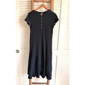 Lauren Ralph Lauren Black Ribbed Henley Midi Dress Women's Size PM
