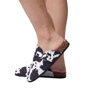NEW MATA Black Cow Print Mules Happy Faces size 9