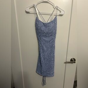Primavera Couture Open Tie Back Sequin Mini Dress