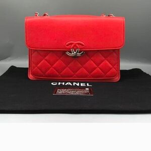 Full set. Autheticity card by entrophy, Chanel authenticity card with matching serial number, care instructions, box with original oaper and ribbons, dust bag. EUC. Chic red quilted design. Iconic Chanel elegance. Perfect crossbody style.