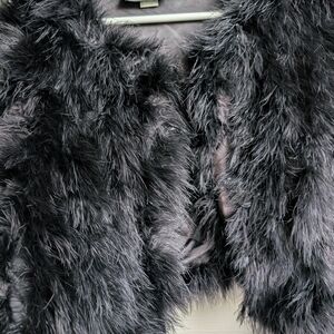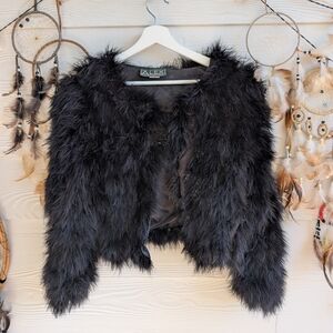 Alex Evenings Vintage Cropped Ostrich Feather Jacket Fluffy Teddy Jacket