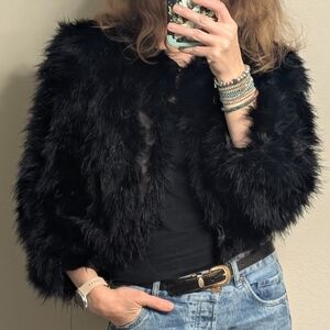 Vintage Cropped Ostrich Feather Jacket Wide Cuff Fluffy Short Coat
