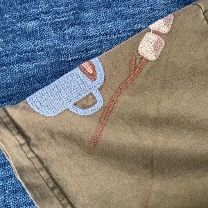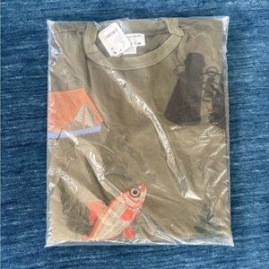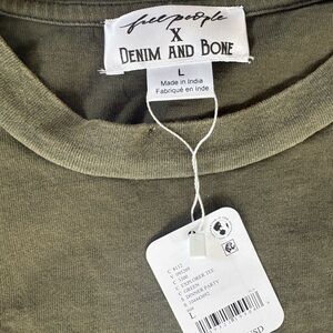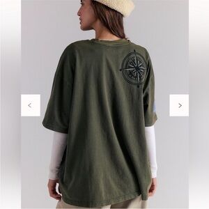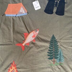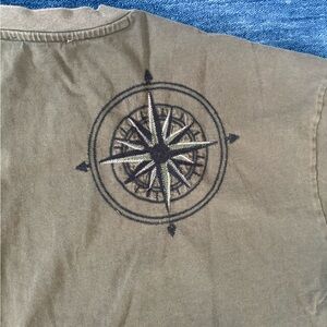 Casual green tee with unique graphic designs by Denim and Bone. The embroidery is beautiful. Short sleeves and a relaxed fit