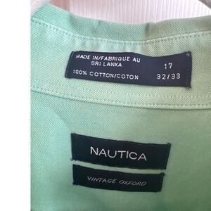 Nautica Mens Vintage Oxford Shirt Seafoam Green 100% Cotton 17 32/33 Long Sleeve