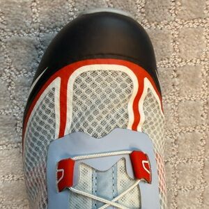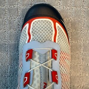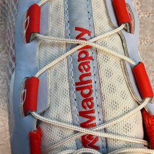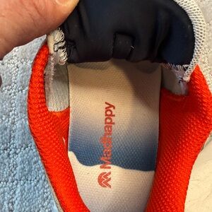 This rare colorway features a crisp white mesh base, pale blue overlays, and bold red zig‑zag detailing — a standout mix of performance and streetwear energy. Madhappy branding appears on the throat banners, adding the collab signature. A collector‑worthy pair in a hard‑to-find size.