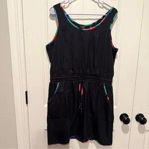 Chic black active dress with multicolor accents. Sleeveless and stylish. Perfect for casual outings.