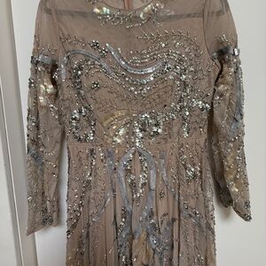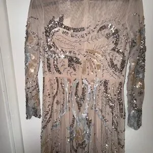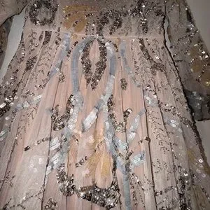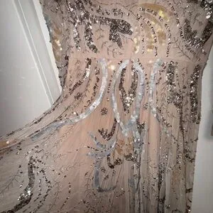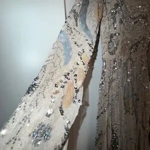 Please note due to the intricate nature of the gown, it's possible there could be a slight flaw loose string, missing bead or sequin, etc.) After close review, I'm not finding anything major.