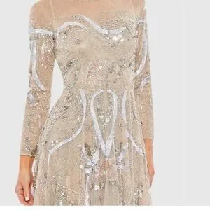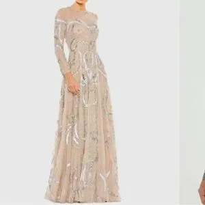 NWT | Mac Duggal 5217 Nude Elegant Sequin Embellished Cream Gown Size 4