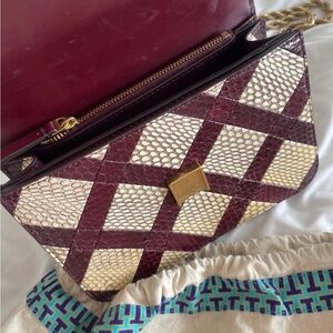 Tory Burch Burgundy and Gold Patterned Crossbody Bag