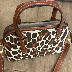 Tory Burch EMERSON PRINTED DOME SATCHEL BEIGE REVA LEOPARD