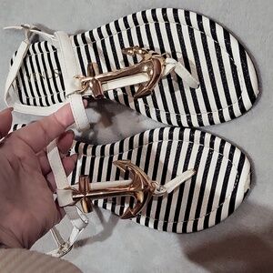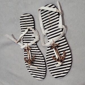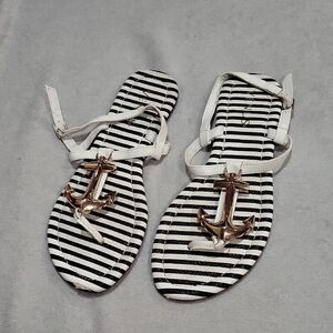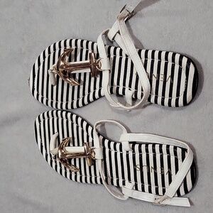 VENUS Black and White Striped Anchor Sandals