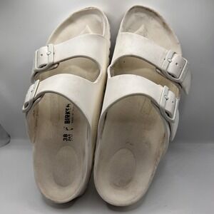 Birkenstock Arizona White Rubber Sandal Slides Womens 7 Eu 38 Read Buckle Strap