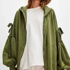Stylish utility jacket with oversized sleeves. Features a zip front and drawstring details. Perfect for layering.