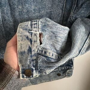 Vintage denim jacket perfect for casual outings. Features a classic denim blue color that pairs well with any outfit. Very nice details and very good quality cotton denim! Some wear to cuffs as shown in pictures, otherwise in really good condition. Fits a medium size