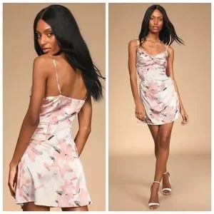 Lulus My Flirty Side Pink Floral Print Satin Lace-Up Mini Slip Dress