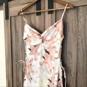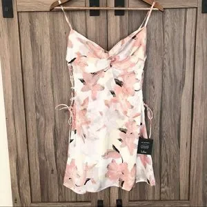 NWT; Beautiful floral satin mini dress with lace up sides and adjustable straps.