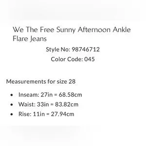 We The Free Sunny Afternoon Ankle Flare Jeans NWOT Size: 31 Color: Lazing About