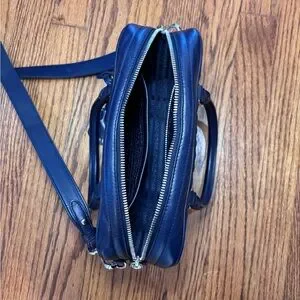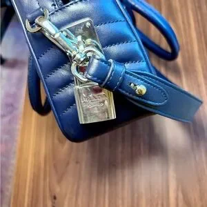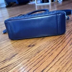 In excellent condition with no damage or signs of wear. The ideal size! Gorgeous navy color with quilted leather style.