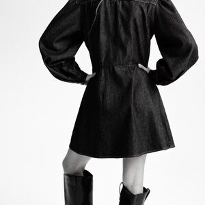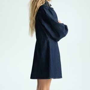 Gorgeous and stylish! Brand new with tags. Wrong size and didn't return in time. No longer available in size large online! Stylish dark blue denim dress featuring puff sleeves and button-down front.