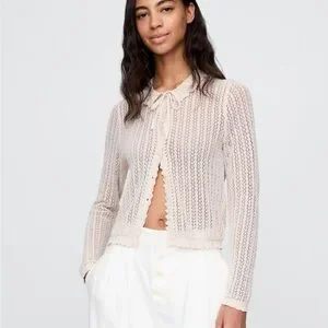 Gap x Doen Pointelle Long Sleeve Cardigan Top Cream NWT!