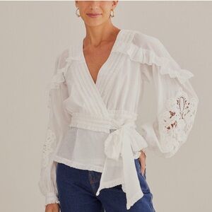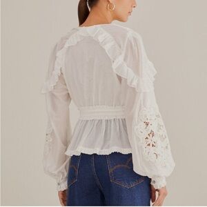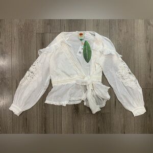 NWT FARM Rio Off-White V Neckline Waist Tie Blouse Size XL