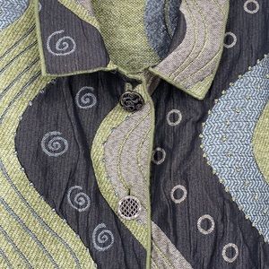 @janina999 Really hard to say it’s a textured fabric it kinda reminds me of a vintage upholstered chair or couch as strange as that is lol I hope that helps