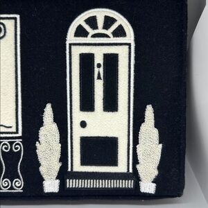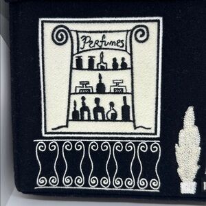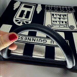 Chic handbag with boutique storefront design. Features bold stripes and elegant graphics. 65%wool,35% viscose.