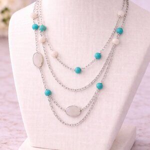 New York & Company Silver & Turquoise Multi-Layer Necklace – 16”