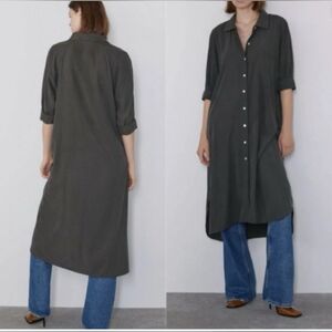 ZARA green Long Sleeve Button Front Shirt Dress Size Medium