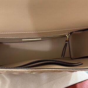 TORY BURCH FLEMING LEATHER CONVERTIBLE LEATHER shoulder bag DESERT DUNE color. Features Signature quilting & Trapunto Logo Style design and gold chain strap. Supple Lambskin. Perfect for any occasion. SMOKE FREE ENVIRONMENT