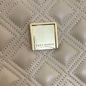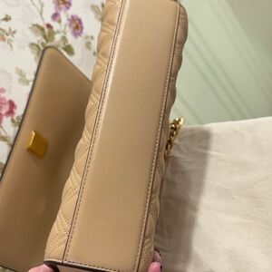 Tory Burch Beige Quilted Shoulder Bag with Gold Chain