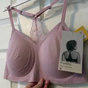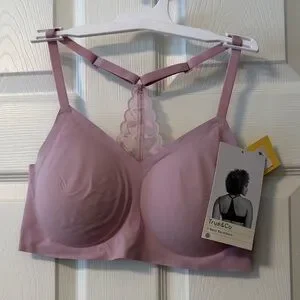 NEW Womens True & Co. V Neck Racerback Bra sz L pink/purple