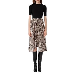 Maje Raprile Leopard Print Layered Look Midi Dress