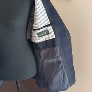 Lauren Ralph Lauren Men's 100% Wool Plaid Blazer Jacket Navy Blue Size 40R