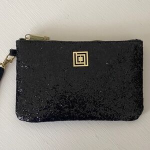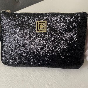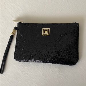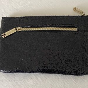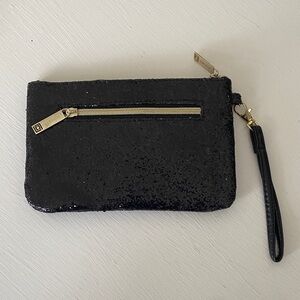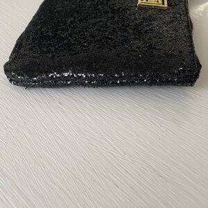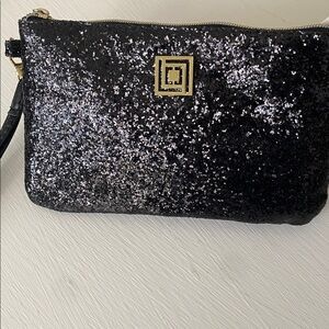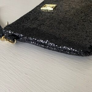 Black Glitter Sparkly Shimmer Large Wristlet Clutch Like New w Charger
