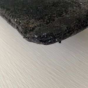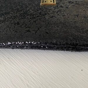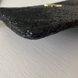 This chic black glitter clutch is perfect for a night out. Its sleek design adds a touch of glamour to any outfit.